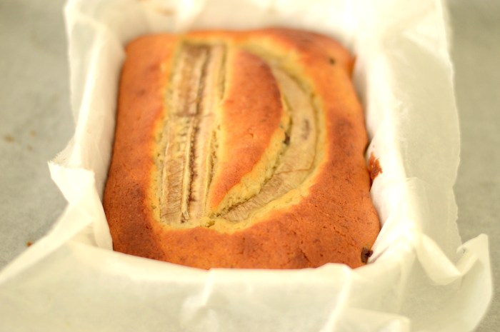 This is as easy as it gets and absolutely delicious with every morsel. There are bits of chocolate punctuating this cake which isn’t cloyingly sweet and the light taste of overripe sweet bananas sits subtly in the background without stealing all the focus.