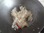 onion, garlic & ginger and a dried red chilli (optional) in the hot oil after adding in the cumin tip in the chopped onion, garlic & ginger