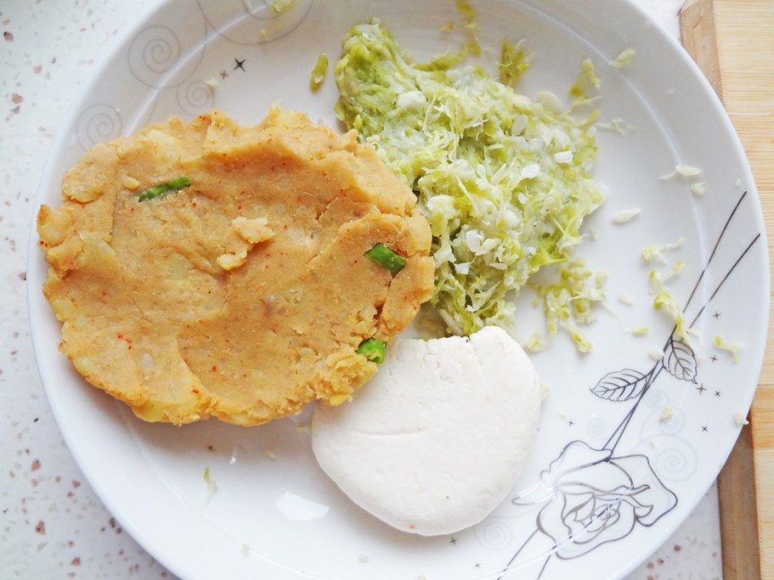 This is our line up of ingredients for the Kofta’s. Boiled & mashed potatoes. I used some leftovers from the Aloo Parantha but you can always just use your boiled potato mashing it well, and the white wodge of beauty is Paneer of course. (you can refer to my Paneer making 101 post).. well that’s it, mash them all together, using 1tsp salt, 1 tsp ground coriander, 1/2 tsp red chilli powder.