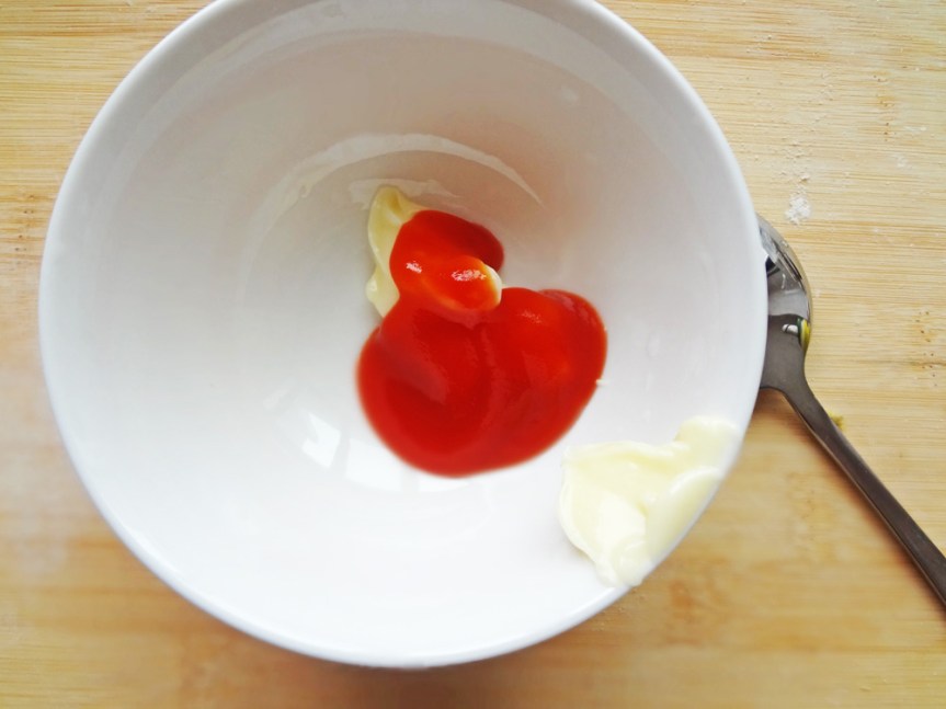 The next step is the generous lathering of a sauce as a base adding more flavour. I have used fry sauce which is simply mayonnaise + ketchup.