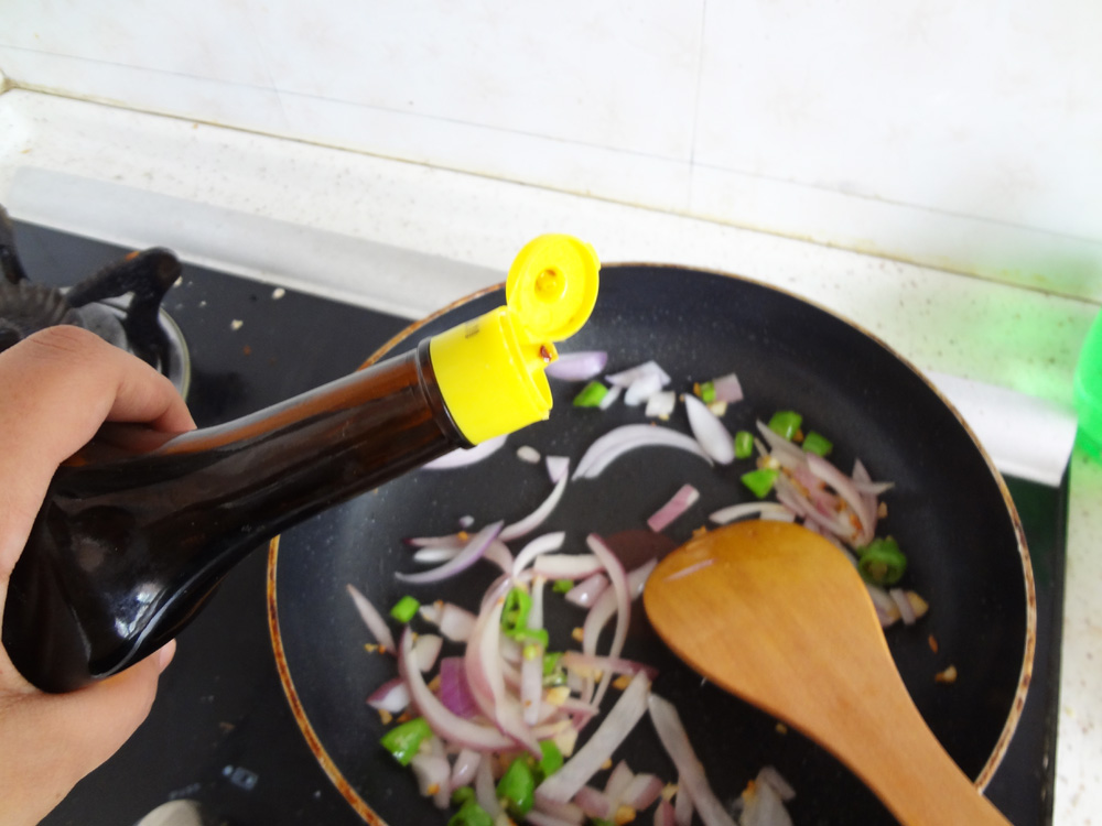 now for some soya sauce.. my kitchen at this moment was heavenly.. I could have eaten these vegetables right out of the pan