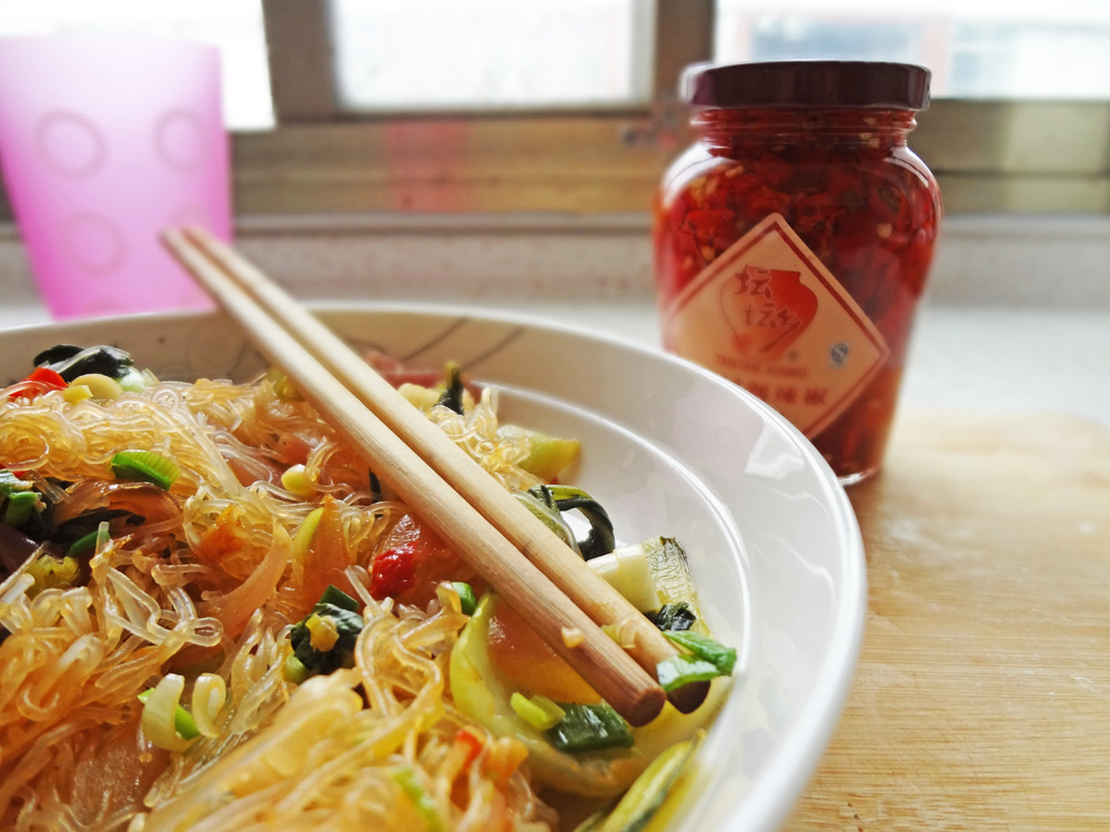 2 tsp chilli in vinegar (it was this bottle of red chillies drenched in vinegar that I found here in China & it was by far the best condiment I had purchased)