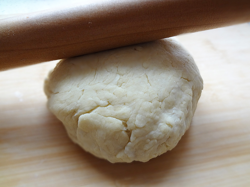 using a fork or a cookie cutter or simply the tips of your thumbs & finger mix the flour and the fat so that the mixture starts resembling wet clumped sand. A grainy mixture, making sure all the fat is incorporated well into the flour and distributed evenly.