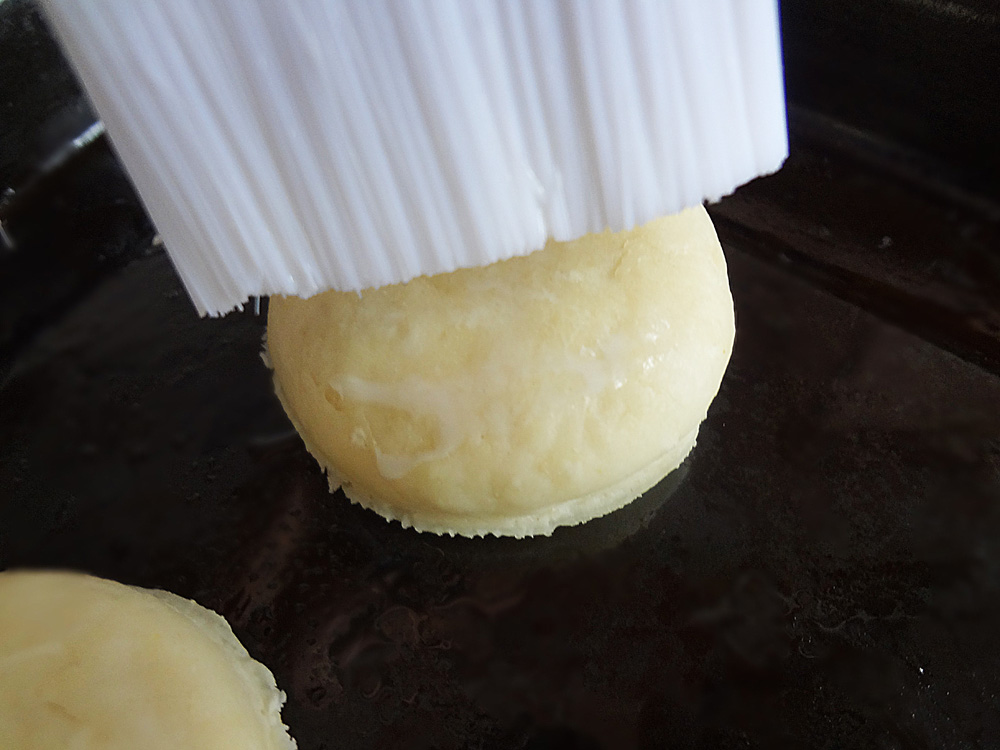 assembling them onto a slightly greased baking dish, they are ready for their make up Gently brush them using the leftover buttermilk. I didn’t bother with an egg wash, but you can if you want.