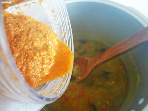Remember the blend from the coconut etc. .. well, it’s time for it to meet its destiny. In it goes in the lentil and vegetables mixture.