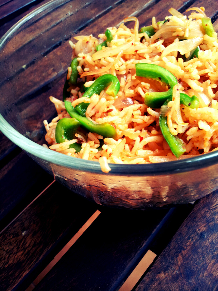 I made a fabulous bowl of fiery Schezuan rice with green peppers.