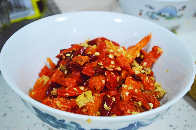 Before I begin this post, let me tell you exactly why there are so many chillies in, and on the fish. I live in the wonderful Hunan Province in China, where the food is soul witheringly hot. It’s so spicy that your intestines beg for mercy, your tongue commits hara kiri and your lips give up on you. It’s so maddenigly hot that the tears from your eyes are just the beginning. It’s the food that all Hunanese people take pride in and the unbelievable part is that it is absolutely addictive. Once you’ve eaten a tear inducing morsel, you wouldn’t stop. You would be in danger of being disoriented but you will keep shoveling it in your mouth. It’s a perfect blend of extreme spice, vinegar, salt and LOVE. Of course you’d hate your macho instincts next morning.. just saying…