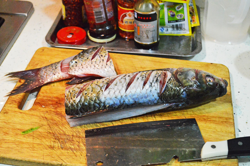 DSC_0102the fish had to be cut, because it was too big for even the big wok.