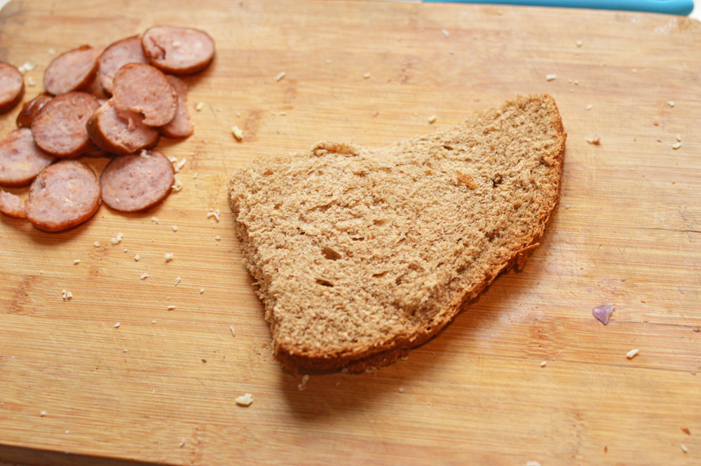 DSC_0916Gently place the other half of your bread on top if this structure. Press down a bit, but honestly if you stuff your sandwich to this point some meat or cheese is bound to ooze out in the most gratifying way.