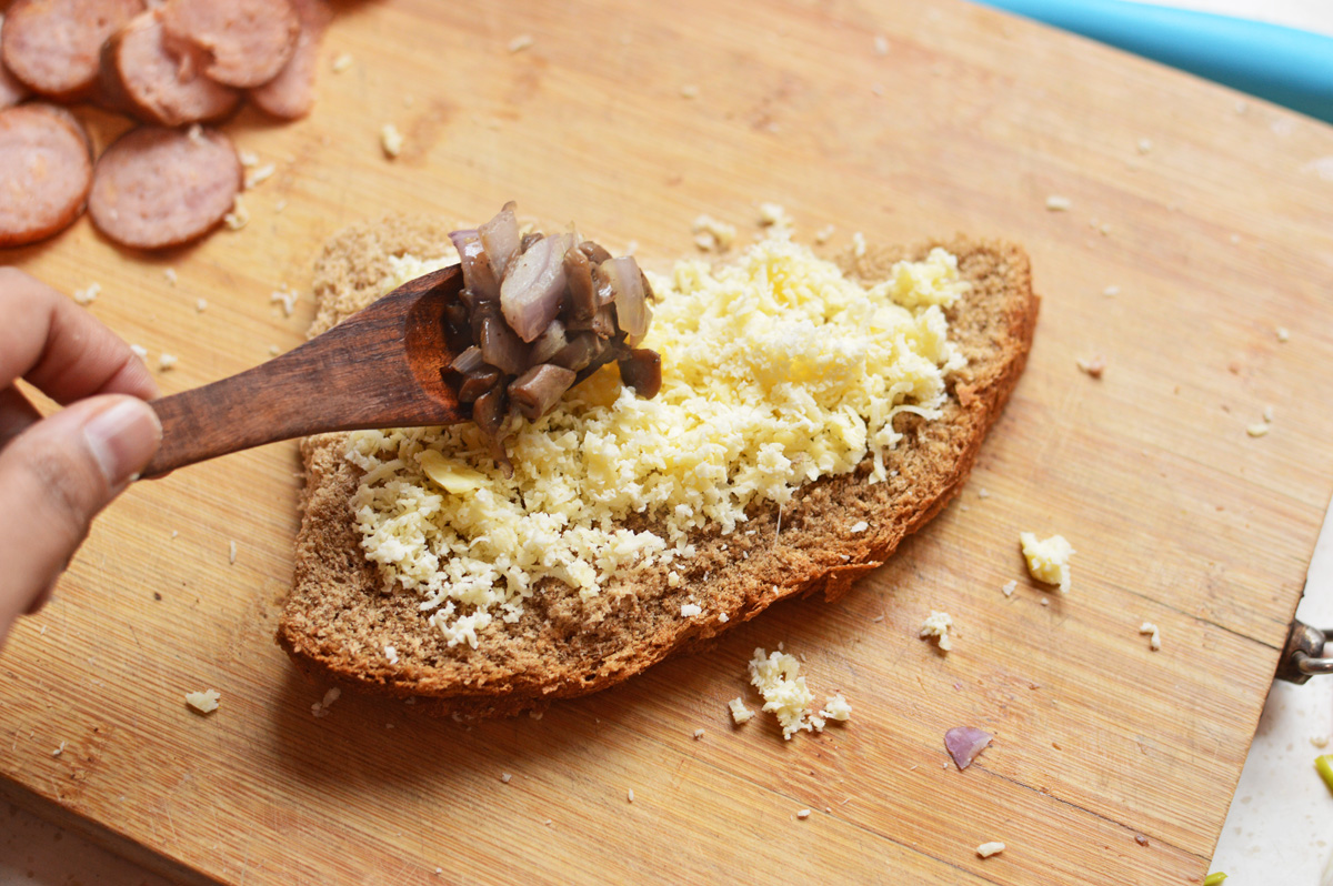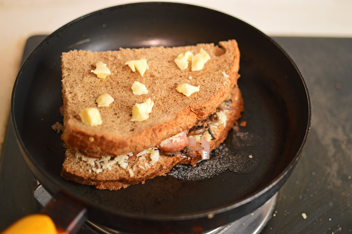 Stoners grub: Sausage, mushroom & cheese sandwich