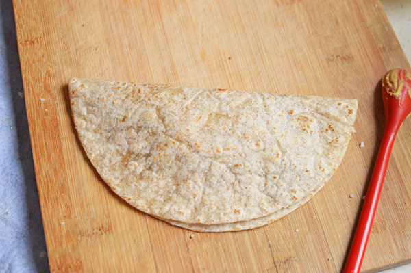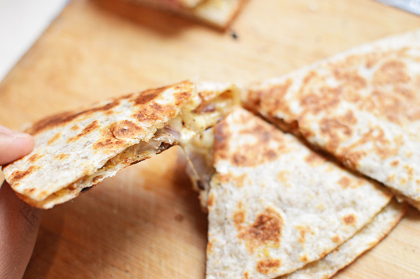 Before I begin, let me tell you that you can substitute these ingredients with whatever you fancy, or whatever leftovers you have in the fridge. Fried eggs, baked potatoes, leftover chicken, crispy bacon are all good. Anything that suits your mood or your appetite can be turned into this quesadilla. Just raid your fridge and go nuts.
