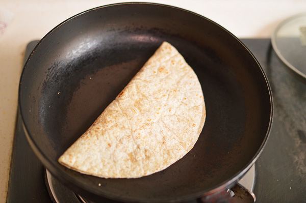 DSC_0687on a hot dry pan (you don’t need any oil) let it cook for a couple of minutes and flip once it’s browned a bit.