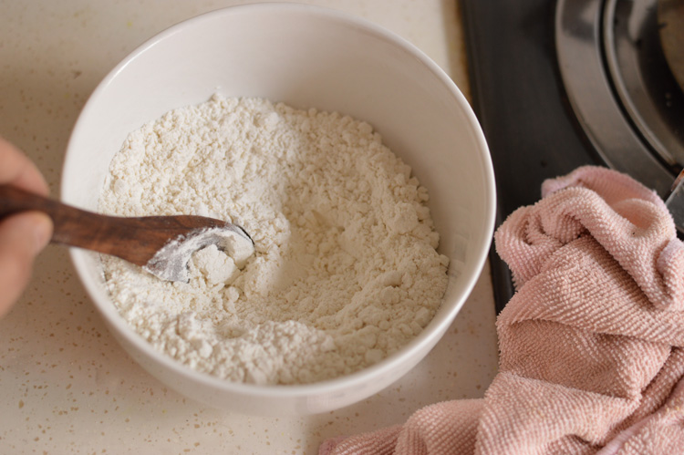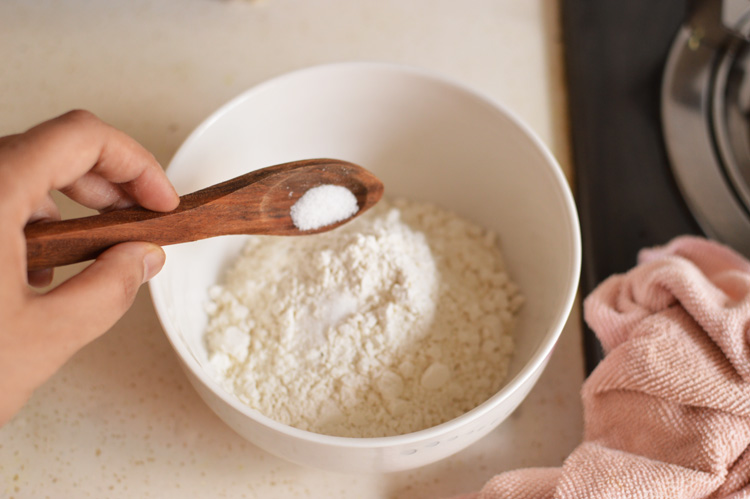Mix the dry ingredients (flour, salt, baking soda) into a separate bowl and set aside.