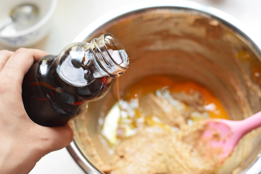 In a clean bowl, add in the softened butter and the sugar and cream until they’re light and fluffy. Crack in the egg and add in the vanilla extract and beat again for about a minute.