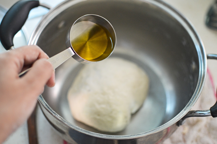 DSC_0347We have to let the bread rest to puff up and become more bread like. So back into the bowl smeared lovingly with some more olive oil. Cover well and let it rest for at least an hour or until the bread has doubled in size. Mine almost took two hours. It’s cold here.