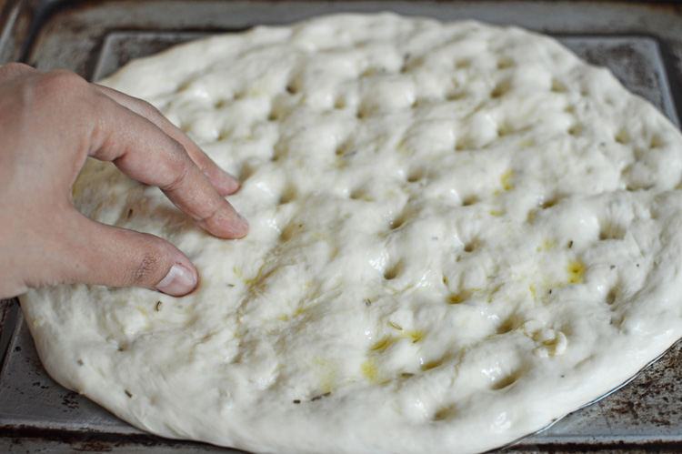 DSC_0367give it that characteristic focaccia dimpled look, by simply pushing in your fingers deep to make pretty little dents and have the oil pool in them. so pretty!