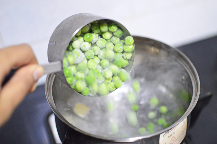 followed by peas. I use frozen peas, but use whatever you have handy.