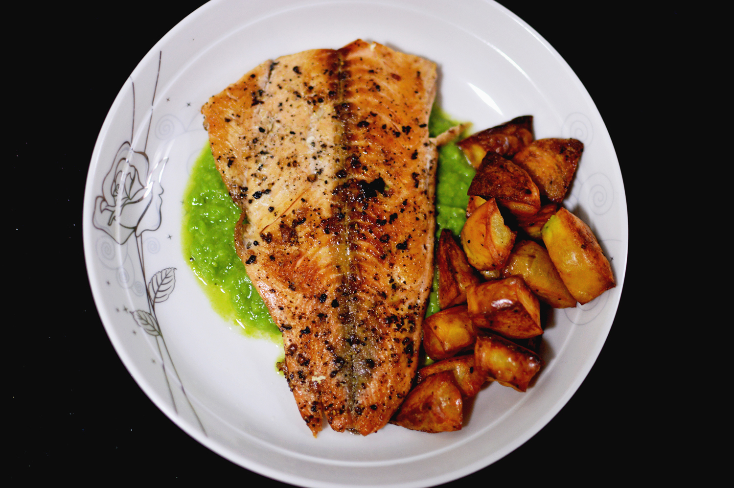 If you’re still on the healthy eating bandwagon and haven’t budged yet from your new years resolution then as annoying as you might be, this is the perfect recipe for you. It’s fish, it’s potatoes and peas..just three simple instruments to serenade you into making a fantastical composition that looks good and tastes even better. You can make a solitary meal for one or fancy meal for many, either which way it’s just as easy and delicious.