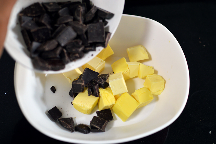 DSC_0314and chunks of chocolate part-1. This one is meant for melting purposes with the butter. You can either melt the butter and chocolate over heating water in a heat proof bowl or melt in a microwave, in 30 second bursts.