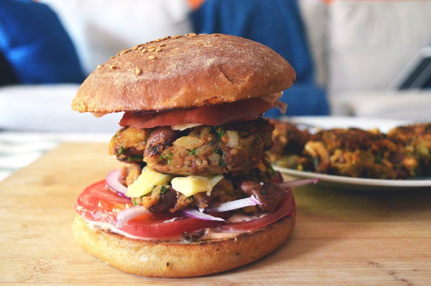 Once the patties are crisped and golden on both sides use them to form into burgers.