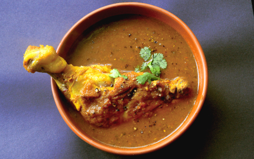 The gravy is a rich velvety emulsion of tomatoes, onions and spices and the consistency can vary according to what one likes to eat it with. Thicker gravy for when you eat it with bread and a bit thinner if eaten with rice, though I must say that it’s rice which brings out, almost helps to bloom each flavour of this curry. Rice provides, in my opinion, a better base than bread for this chicken curry and so I’ve cooked this accordingly.