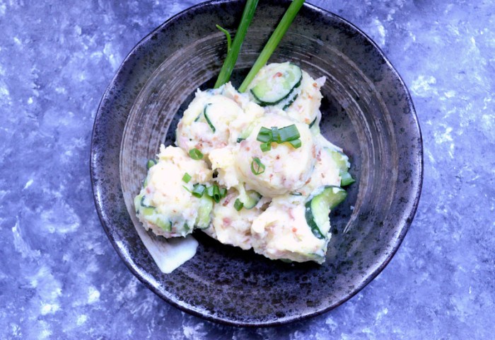 I’d had japanese potato salads before , but perhaps never deconstructed their anatomy the way I did while eating these, mostly in part due to the scooped out shapes or perhaps because of the crunchy cucumber texture, but I knew I had to make these and so here we are.