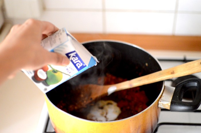 Let it simmer and come to a boil and this will really draw out the flavour from the coconut milk.