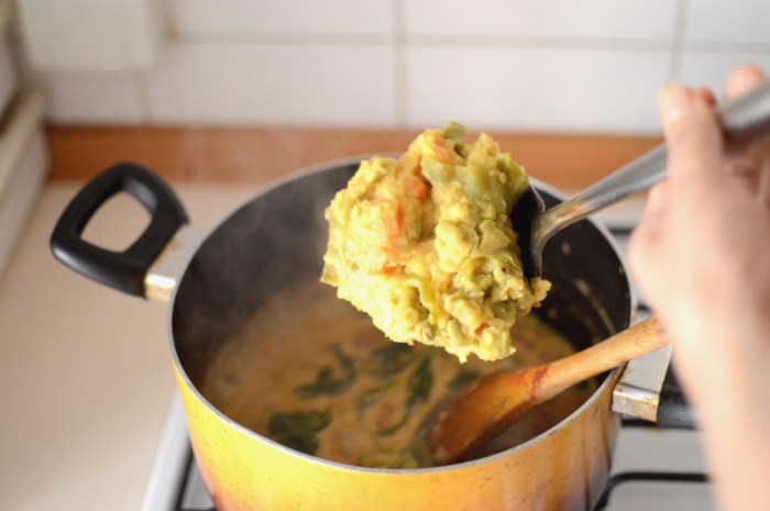 Let it come to a bubble before finally adding in the cooked lentils and vegetables.