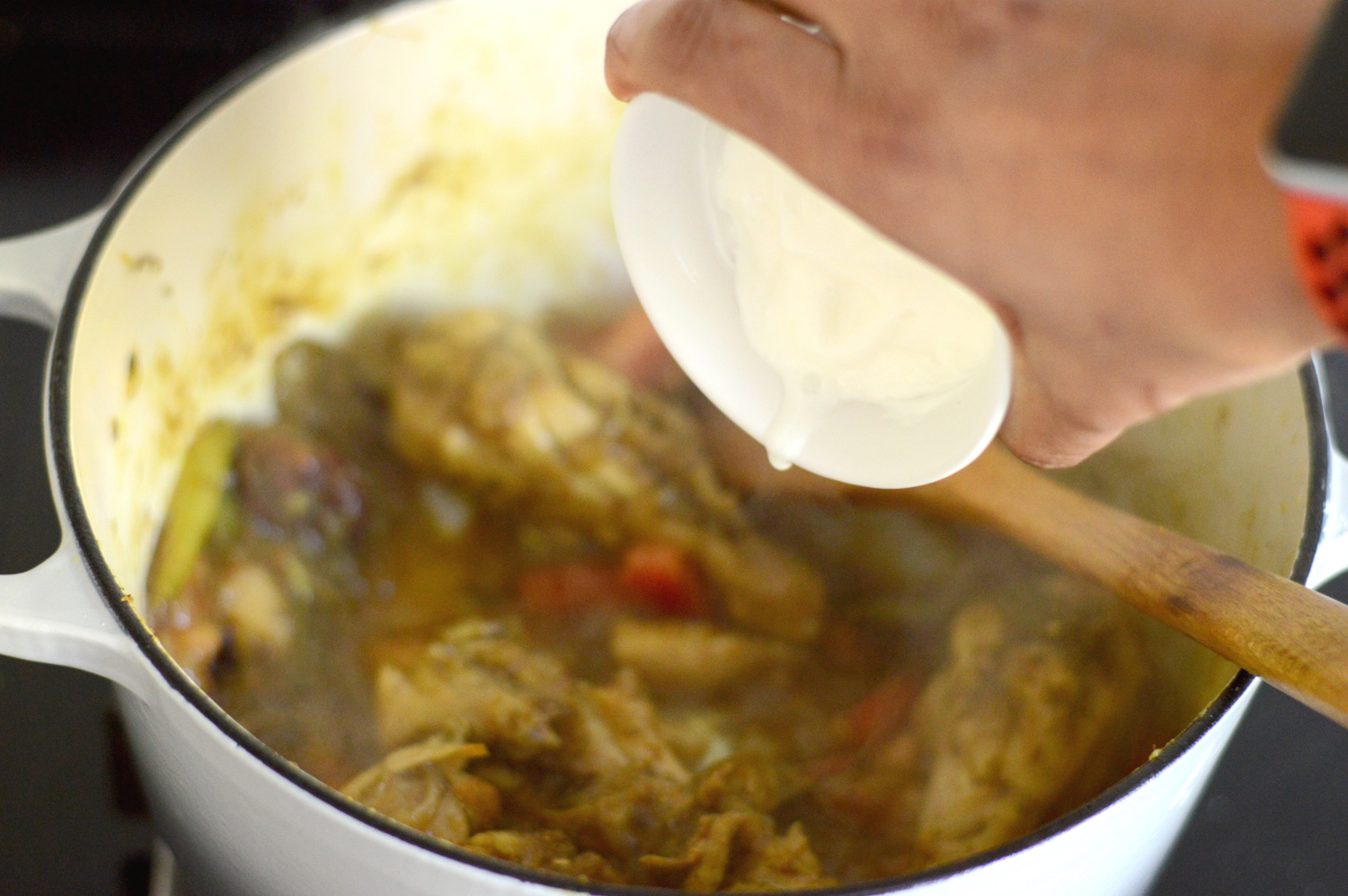Stir to combine and add in the yogurt. Mix well and once again cover and let everything cook for another 5 minutes on a low flame.