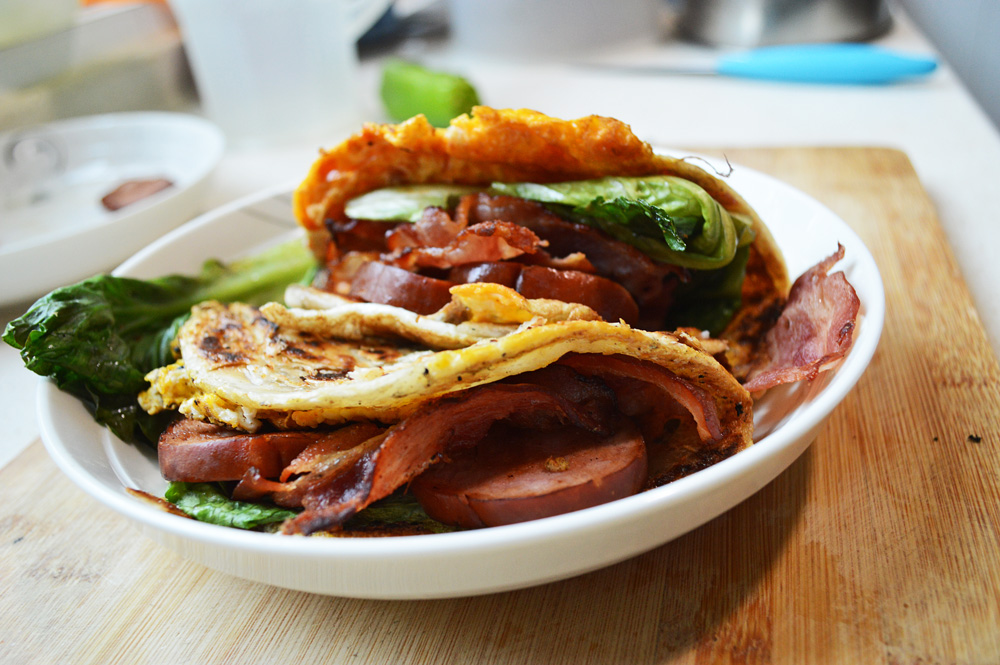 it’s done pretty much the same way you would these fish fingers . The principles are the same and so is the technique, though you can play around with how you’d like these cutlets to taste. The usual fare of eggs, garlic powder, salt, pepper, flour, bread crumbs and chicken breasts that I have sliced into fillets.