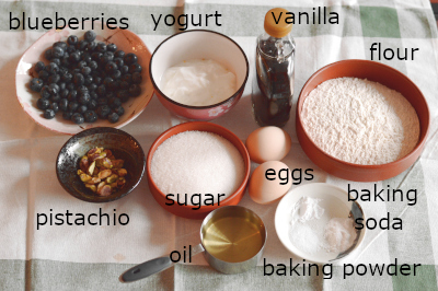 The ingredients are few. Bananas, eggs, butter, flour, chocolate, baking powder and sugar