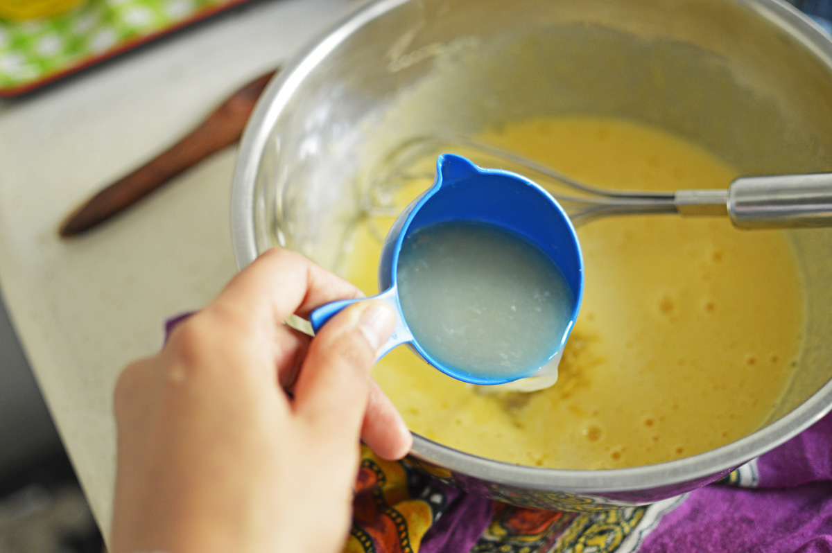 and 1/2 of our magic potion that is fanta and lemon juice. Mix after each addition just until the batter comes together