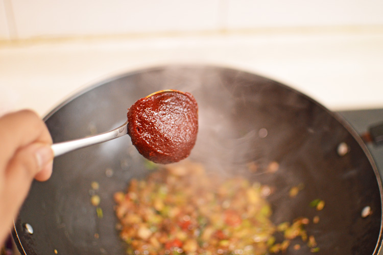add in an unapologetically fat glob of gochujang to the boiling mushroomy broth