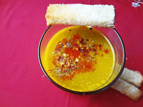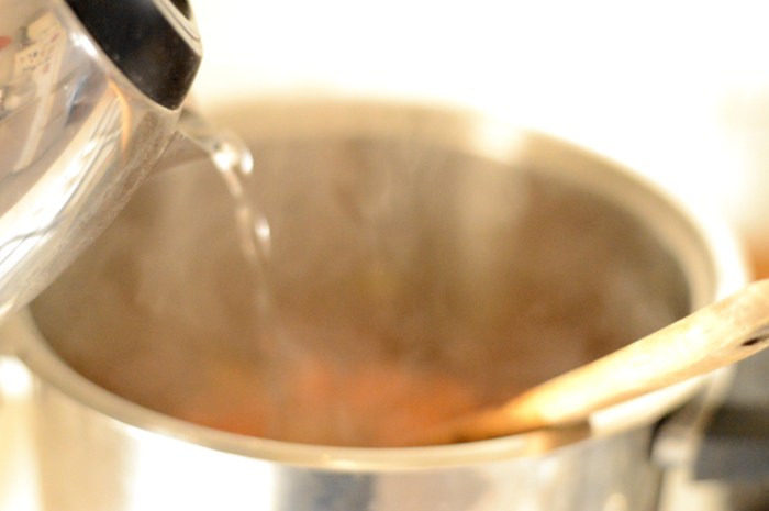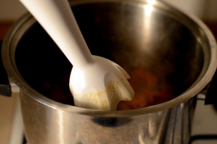 This isn’t the first noodle soup recipe on this blog, and most assuredly, not the last; this however is (as immodest as it may sound) the alpha and the omega of soupy noodle world. Meatless magic in all its crimson glory. The red blush that stains this fantastic broth is courtesy ‘Gochujang’; that vividly red Korean paste of hot peppers, easily available at your nearest Asian grocery store.