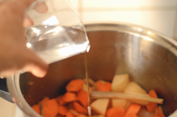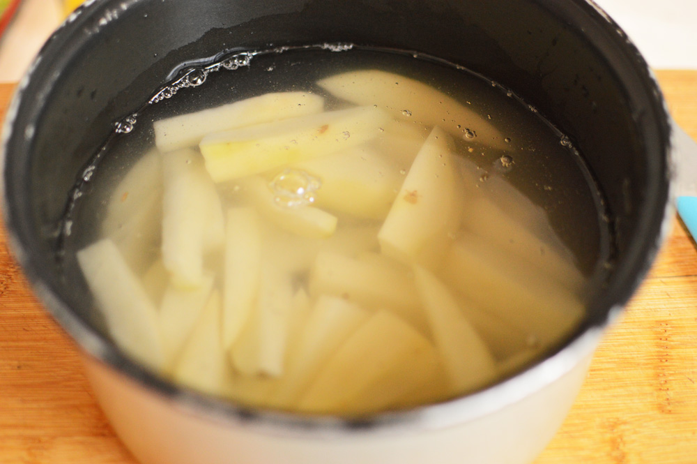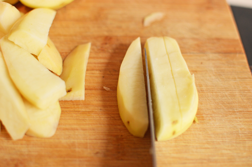 Wash, clean and prepare the vegetables by choppin into bite sized pieces.