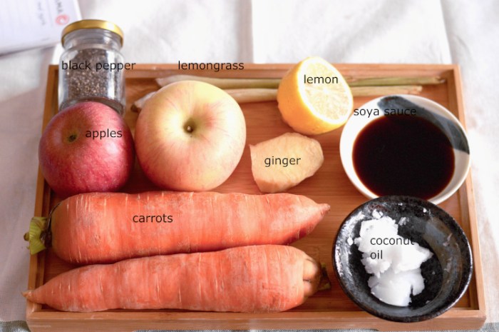 Greens of choice. I’m using Chinese lettuce here. Coriander, mushrooms, green onions, ginger and garlic, noodles, soy sauce and gochujang.