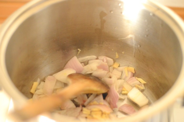 now for the rice. I used a rice cooker and steamed the rice with a clove and black cardamom pod (totally optional)