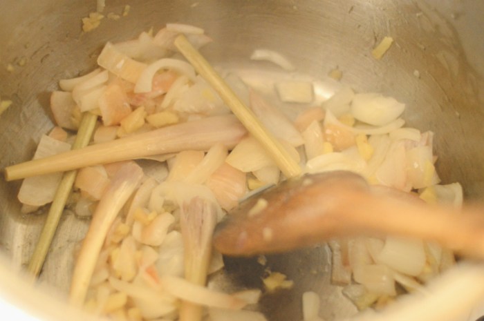 and in with the fish chunks. Cook for a few minutes, until the fish is more or less cooked.