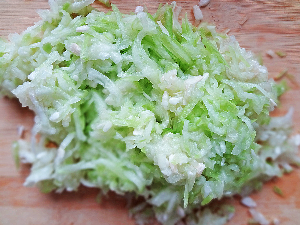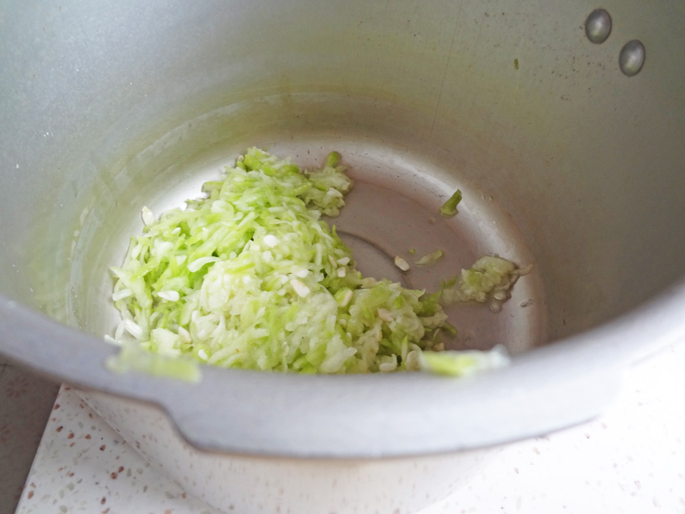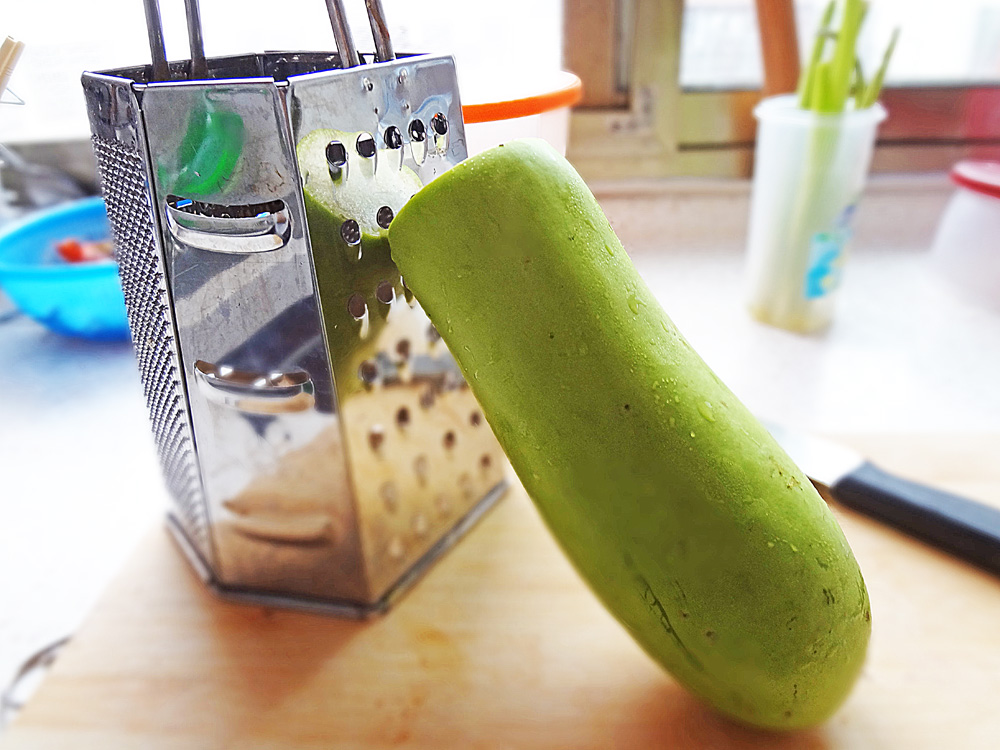 take the gourd and grate it well. If you’re like me- keep a band aid handy.