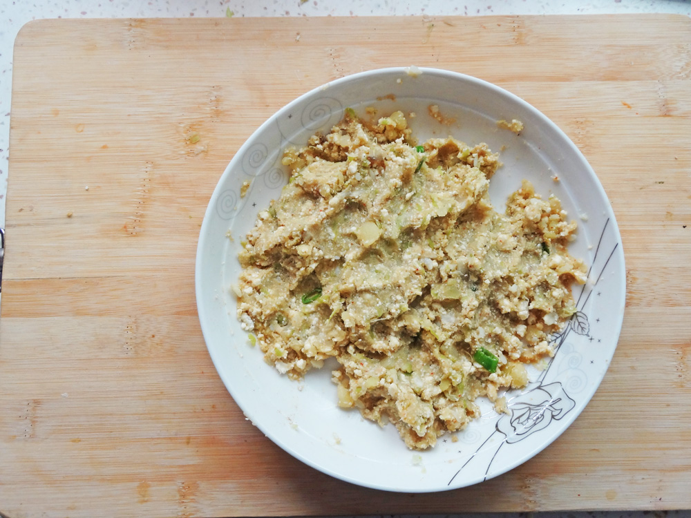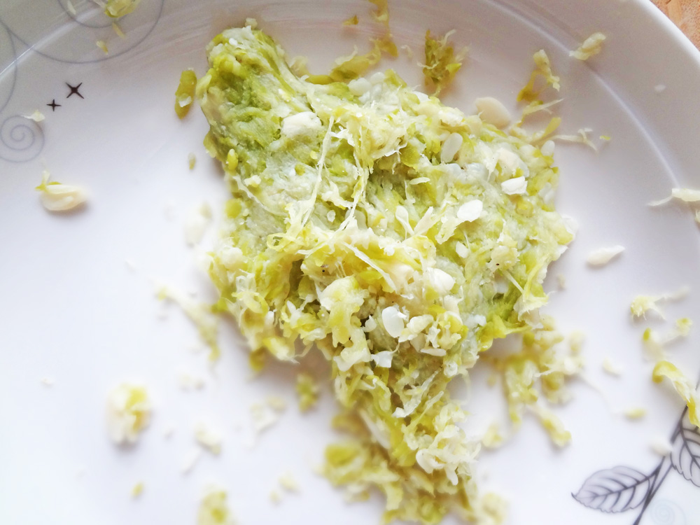 After 10 minutes you’ll see all this water accumulated in your pan or well in my case. We need to separate that- take a cheesecloth or any fine cloth and drain, squeeze it using your hands, but please let this stuff cool down first or wear gloves. squeeze out all the water- any moisture ad it will refuse to bind completely, and we don’t want to fry a mess of green mass.